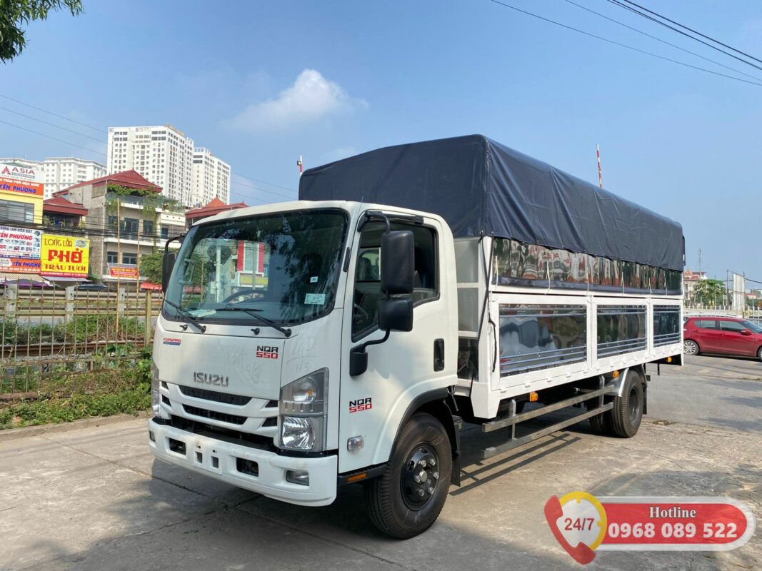 - Xe tải isuzu 5 tấn thùng mui bạt: isuzu 5 tấn thùng mui bạt được thiết kế để chở các mặt hàng cần thoáng, cơ động có thể thay đổi chiều cao hàng hóa